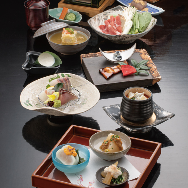都会の喧騒を忘れ、四季折々の花で彩られた北九州屈指の枯山水の庭園を眺めながら、ゆっくりと寛げる空間で美味しい料理と美酒に酔いしれる。老舗料亭の雅なひとときをお楽しみいただきたい。