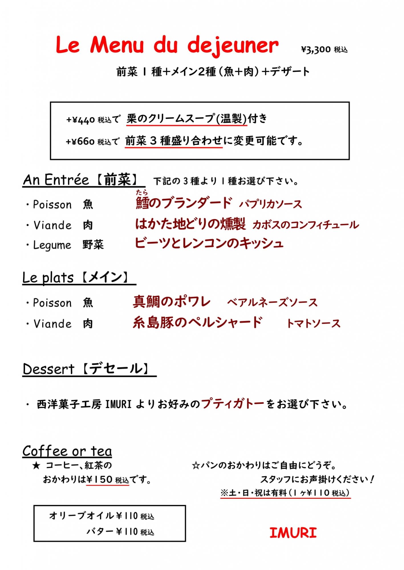 桜坂の小高い丘にある「イムリ」は、福岡タワーや福岡の街並みを一望でき、 大きな窓から見える雲の動きや木々の動きなどで、自然を感じていただるお店です。 そんな抜群のロケーションにあるイムリでは日本の料理屋IMURI(フレンチ)と西洋菓子工房IMURとのコラボレーションで、カフェ&ランチを営業しています。