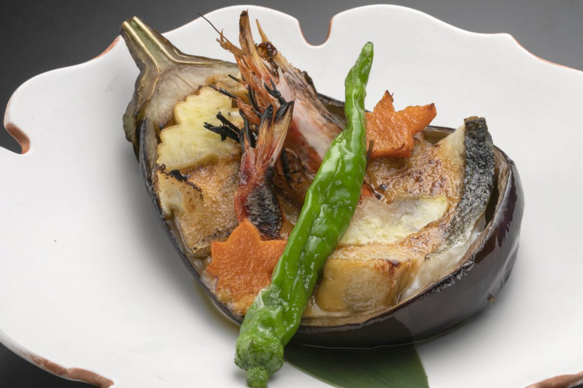 ◆ 玄海産 紅葉鯛と天草産 車海老の茄子釜盛り